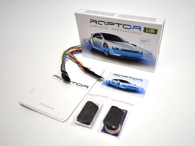 RAPTOR 151 это комплекс из бесконтактного иммобилайзера с двумя Bluetooth метками и дистанционного реле AR20 которое позволяет реализовать дополнительную аналоговую блокировку двигателя. Это нужно в том случае когда нарушена связь по CAN-шине с блоком управления двигателем.